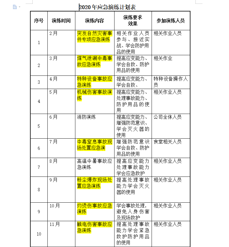 Í»·¢×ÔÈ»ÔÖº¦Ê¼þרÏîÓ¦¼±ÑÝÁ·£¬Ïà¹Ø×÷ÒµÈËÔ±²ÎÓë¡¢½Ó½üʵս¡¢Ñ§»á·À»¤ÓÃÆ·µÄʹÓá£ÃºÆøÐ¹Â©Öж¾Ê¹ÊÓ¦¼±ÑÝÁ·£¬Ìá¸ßÓ¦±äÄÜÁ¦¡¢Ñ§»á×Ծȡ¢·À»¤ÓÃÆ·µÄʹÓá£ÌØÖÖÉ豸ʹÊÓ¦¼±ÑÝÁ· Ìá¸ßÓ¦±äÄÜÁ¦¡¢Ñ§»á×Ծȡ¢»úеÉ˺¦Ê¹ÊÑÝÁ·£¬Ìá¸ßÓ¦±äÄÜÁ¦¡¢´¦ÀíʹÊÄÜÁ¦¡¢·À»¤ÓÃÆ·µÄʹÓá£Ïû·ÀÑÝÁ·£¬Ìá¸ßÓ¦±äÄÜÁ¦¡¢ÔöÇ¿·À·¶Òâʶ¡¢Ñ§»áÃð»ðÆ÷µÄʹÓá£Öж¾ÖÏϢʹÊÏÖ³¡´¦ÖÃÓ¦¼±ÑÝ ÔöÇ¿·À·¶Òâʶѧ»á×Ծȡ¢·À»¤ÓÃÆ·µÄʹÓ᣸ßÎÂÖÐÊîʹÊÓ¦¼±ÑÝÁ·£¬Ìá¸ßÓ¦±äÄÜÁ¦´¦ÀíʹÊÄÜÁ¦Ñ§»áÓ¦¼±¾È»¤¡£·Û³¾±¬Õ¨ÏÖ³¡´¦ÖÃÓ¦¼±ÑÝÁ·£¬Ìá¸ß´¦ÀíʹÊÄÜÁ¦Ñ§»áÃð»ðÆ÷µÄʹÓá£×ÆÌÌÉËʹÊÓ¦¼±ÑÝÁ·£¬Ñ§»áʹʴ¦Àí£¬±ÜÃâÈËÉíÉ˺¦¼°ÏÖ³¡¾È»¤¡£´¥µçÉ˺¦Ê¹ÊÓ¦¼±ÑÝÁ·£¬Ìá¸ß´¦ÀíʹÊÄÜÁ¦Ñ§»á½ô¼±¾È»¤·À»¤ÓÃÆ·µÄʹÓ᣶¾ÎïÍâÒçʹÊÓ¦¼±ÑÝÁ·£¬Ìá¸ß´¦ÀíʹÊÄÜÁ¦ºÍÓ¦±äÄÜÁ¦Ñ§»á·À»¤ÓÃÆ·µÄʹÓÃ