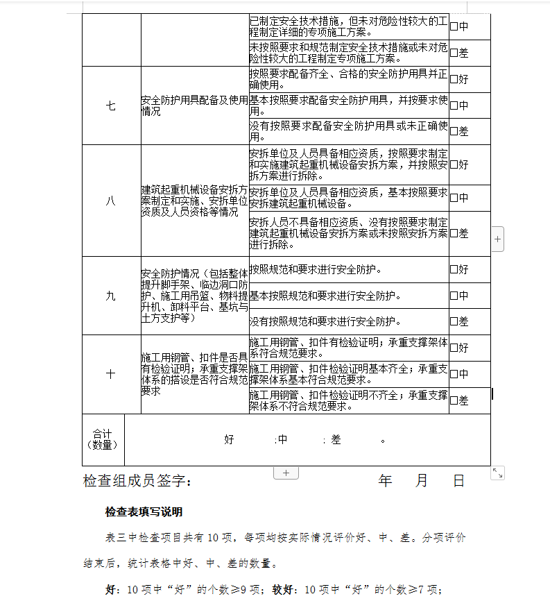 建筑安全生产隐患排查治理工作检查表包括:工程建设各方责任主体和有关机构质量安全行为检查表、工程建设强制性标准执行情况检查表。