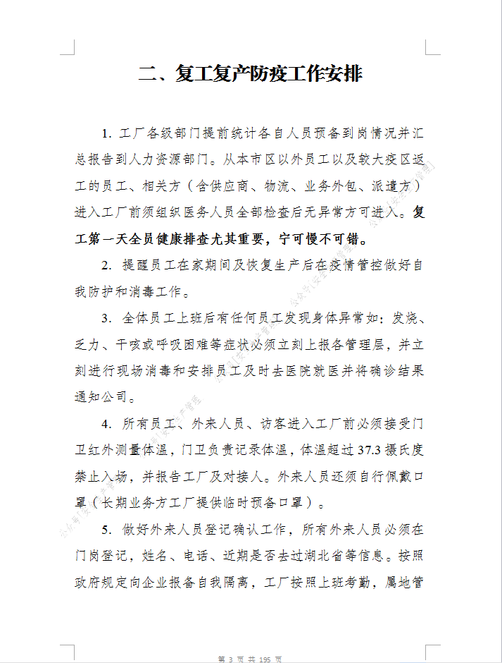 第一篇 工厂复工复产肺炎疫情防疫方案..............................................1