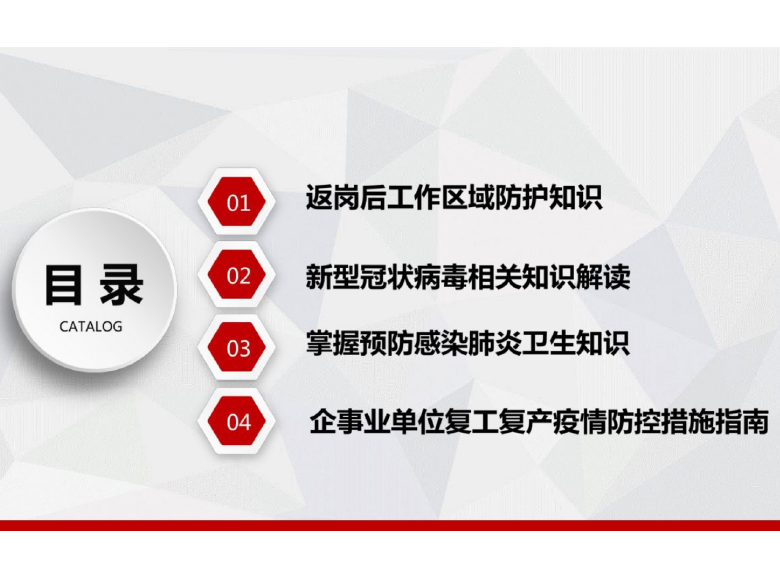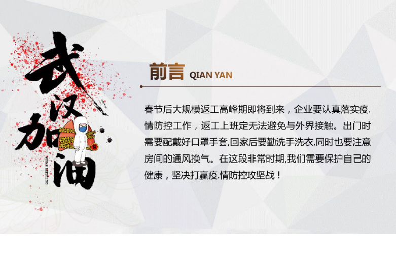 ¹«Ë¾½Úºó¸´¹¤ÒßÇé·À¿ØÓ¦¼±·½°¸Ö÷ÒªÄÚÈÝ£º·µ¸Úºó¹¤×÷ÇøÓò·À»¤ÖªÊ¶¡¢ÐÂÐ͹Ú×´²¡¶¾Ïà¹ØÖªÊ¶½â¶Á¡¢ÕÆÎÕÔ¤·À¸ÐȾ·ÎÑ×ÎÀÉú֪ʶ¡¢ÆóÊÂÒµµ¥Î»¸´¹¤¸´²úÒßÇé·À¿Ø´ëʩָÄÏ