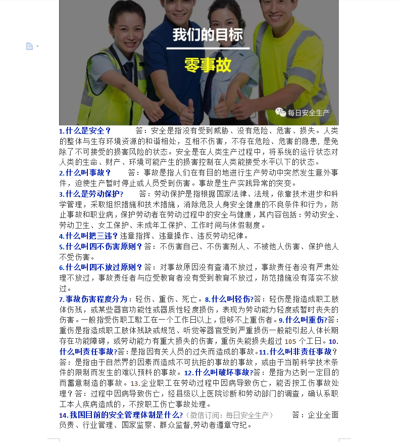 安全是指没有受到威胁、没有危险、危害、损失。人类的整体与生存环境资源的和谐相处,互相不伤害,不存在危险、危害的隐患, 是免除了不可接受的损害风险的状态。安全是在人类生产过程中,将系统的运行状态对人类的生命、财产、环境可能产生的损害控制在人类能接受水平以下的状态。