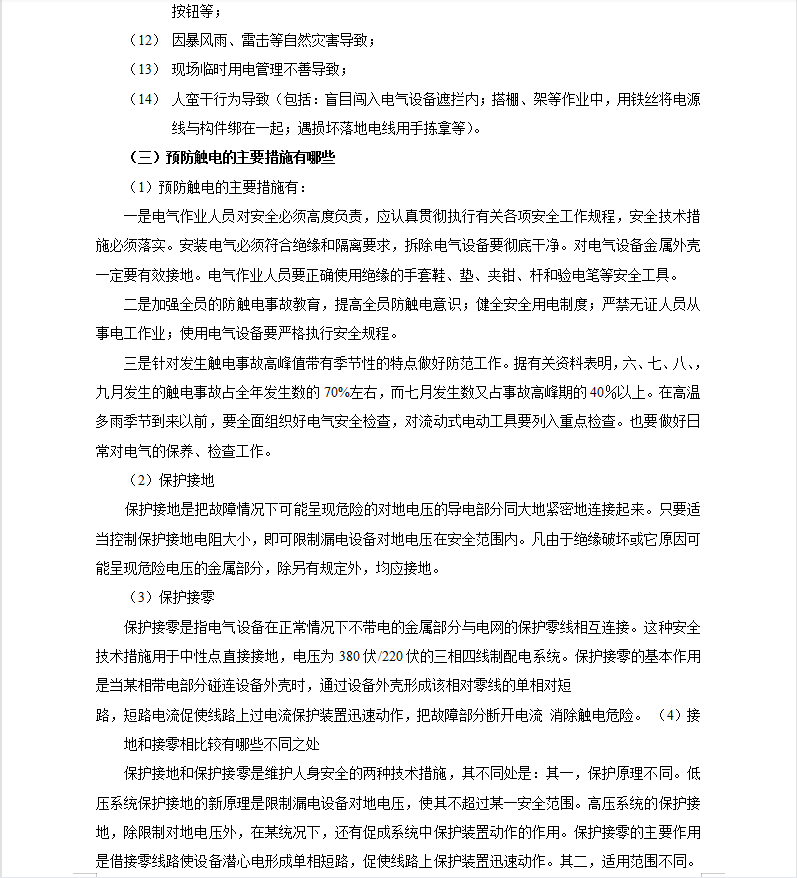 电气作业人员对安全必须高度负责,应认真贯彻执行有关各项安全工作规程,安全技术措施必须落实。安装电气必须符合绝缘和隔离要求,拆除电气设备要彻底干净。对电气设备金属外壳一定要有效接地。电气作业人员要正确使用绝缘的手套鞋、垫、夹钳、杆和验电笔等安全工具。