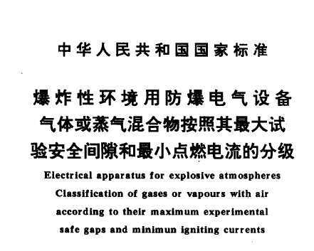 GB 3836.12-1991 爆炸性环境用防爆电气设备 第11部分:气体或蒸气混合物按照最大试验安全间隙和最小点燃电流的分级