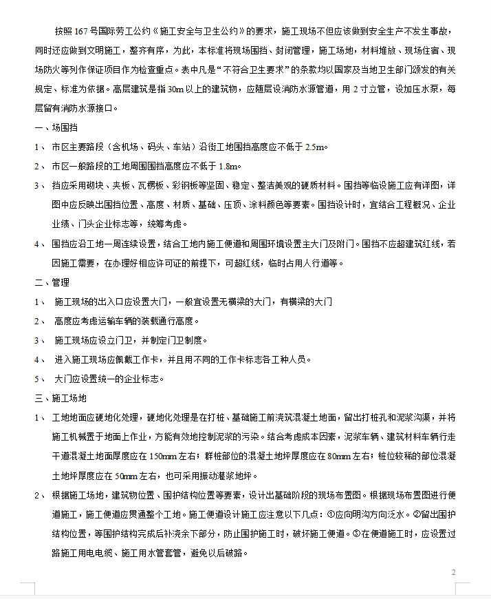 ½¨ÖþÊ©¹¤ÏÖ³¡°²È«¼ì²é±ê×¼Ö÷ÒªÓа´ÕÕ167ºÅ¹ú¼ÊÀ͹¤¹«Ô¼¡¶Ê©¹¤°²È«ÓëÎÀÉú¹«Ô¼¡·µÄÒªÇóÊ©¹¤ÏÖ³¡²»µ«Ó¦¸Ã×öµ½°²È«Éú²ú²»·¢ÉúʹÊͬʱ»¹Ó¦×öµ½ÎÄÃ÷Ê©¹¤¡£ÕûÆëÓÐÐò£¬Îª´Ë£¬±¾±ê×¼½«ÏÖ³¡Î§µ²¡¢·â±Õ¹ÜÀí£¬Ê©¹¤³¡µØ£¬²ÄÁ϶ѷš¢ÏÖ³¡×¡ËÞ¡¢ÏÖ³¡·À»ðµÈÁÐ×÷±£Ö¤ÏîÄ¿×÷Ϊ¼ì²éÖØµã¡£±íÖз²ÊÇ¡°²»·ûºÏÎÀÉúÒªÇó¡±µÄÌõ¿î¾ùÒÔ¹ú¼Ò¼°µ±µØÎÀÉú²¿ÃÅËÌ·¢µÄÓйع涨¡¢±ê׼ΪÒÀ¾Ý¡£¸ß²ã½¨ÖþÊÇÖ¸30mÒÔÉϵĽ¨ÖþÎï£¬Ó¦Ëæ²ãÉèÏû·ÀˮԴ¹ÜµÀ£¬ÓÃ2´çÁ¢¹Ü£¬Éè¼Óѹˮ±Ã£¬Ã¿²ãÁôÓÐÏû·ÀˮԴ½Ó¿Ú¡£