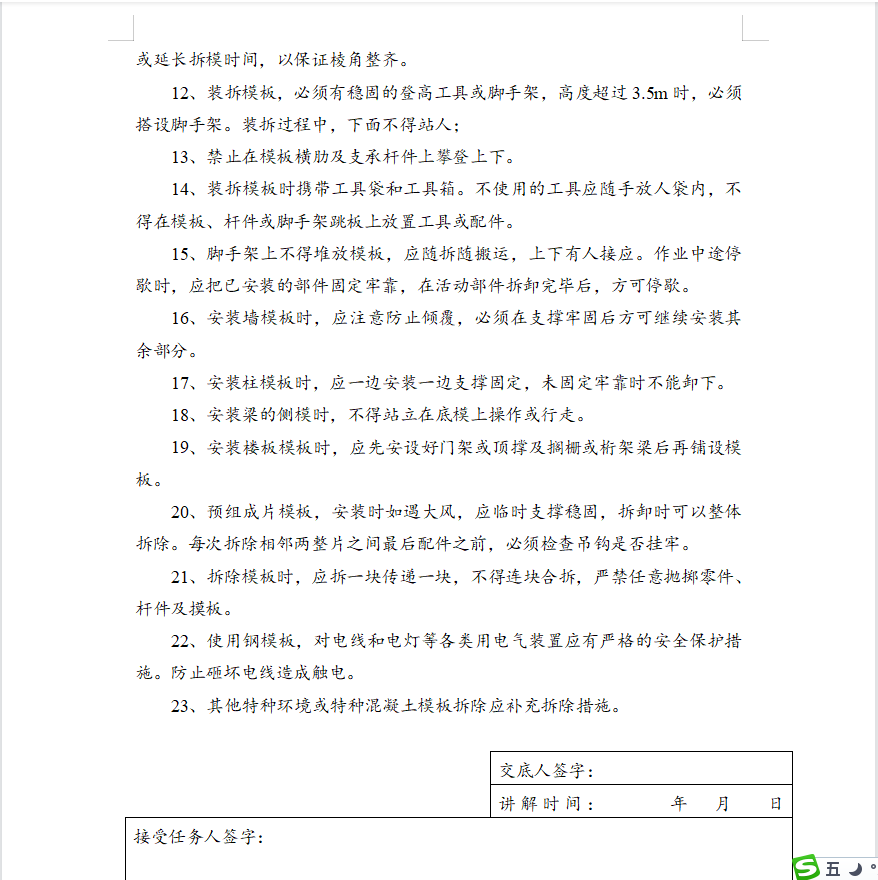 2¡¢2mÒÔÉÏÁº¡¢Öù¡¢Ç½¡¢Â¥¶¥°²×°»ò²ð³ýÄ£°å£¬Áٱ߱ØÐëÓзÀÖ¹ÈËÔ±¡¢²ÄÁÏ×¹ÂäÉËÈ˵ĴëÊ©£®½ûÖ¹ÎÞÈκηÀ»¤´ëÊ©²ð³ý»ò°²×°Ä£°å¡£