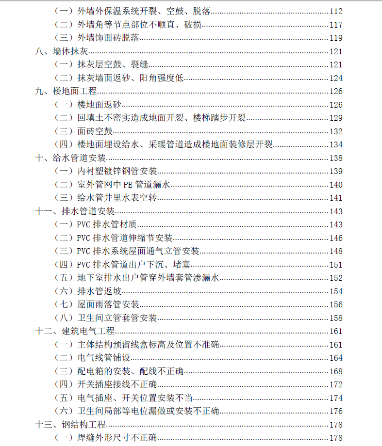 本指南详细阐述了质量常见问题表现、原因分析、防治措施和质量控制重点等,并配有大量施工现场的实例图片,方便技术人员在施工过程中掌握和应用。
