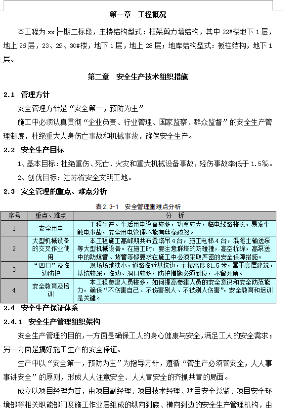 本工程为xx一期二标段,主楼结构型式:框架剪力墙结构,其中22#楼地下1层,地上26层,23、29、30#楼,地下1层,地上28层;地库结构型式:板柱结构,地下1层。