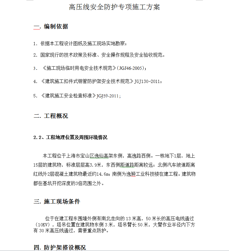十五层办公楼高压线防护施工方案