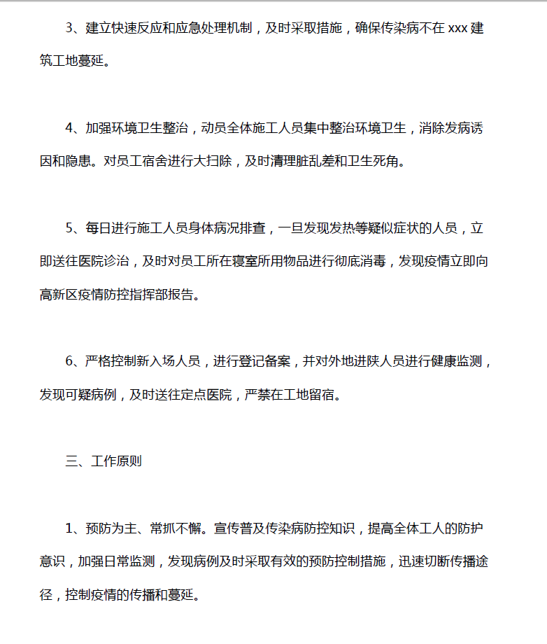 建筑施工工地新型冠状病毒疫情防控方案