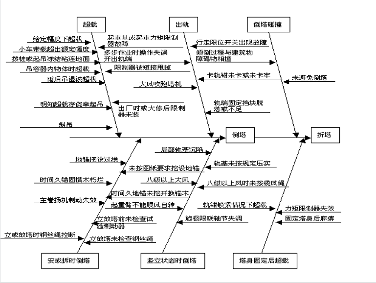 起重机械包括塔机和升降机,塔机最大的事故就是意外倒塌,升降机最大的事故除了意外倒塌外还有吊笼坠落,造成这些事故不外乎六个原因:1)装拆程序错误; 2)无证违规使用;3)安全装置失灵;4)地基基础不牢;5)产品质量问题;6)管理监督不力