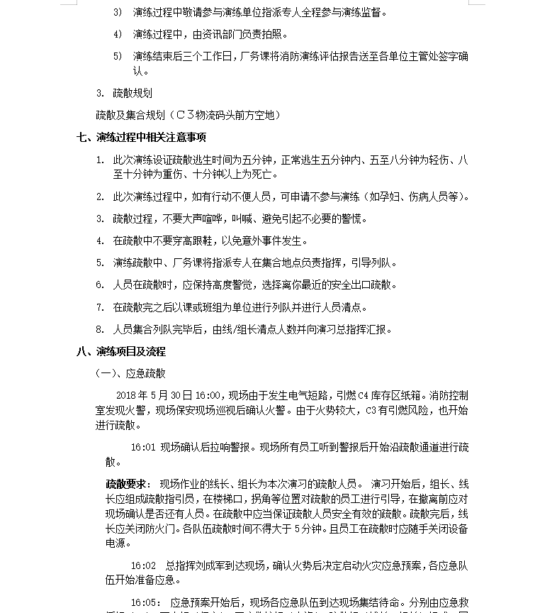 3)生产部组织各班组规划员工疏散通道、逃生方案,确定哪些人从哪个出口逃生。