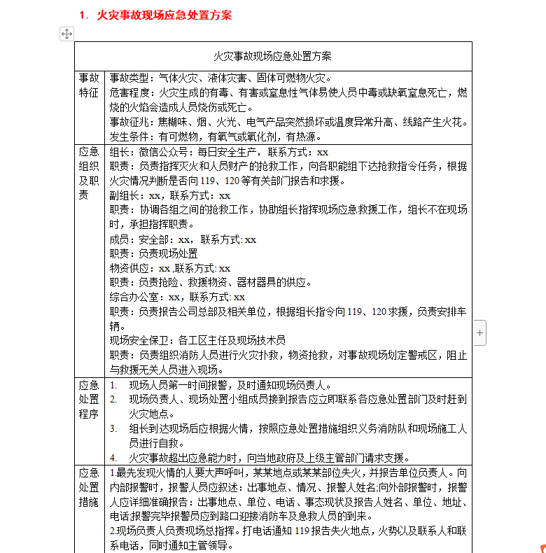 应急处置措施:1.最先发现火情的人要大声呼叫,某某地点或某某部位失火,并报告单位负责人。向内部报警时,报警人员应叙述:出事地点、情况、报警人姓名;向外部报警时,报警人应详细准确报告:出事地点、单位、电话、事态现状及报告人姓名、单位、地址、电话;报警完毕报警员应到路口迎接消防车及急救人员的到来。