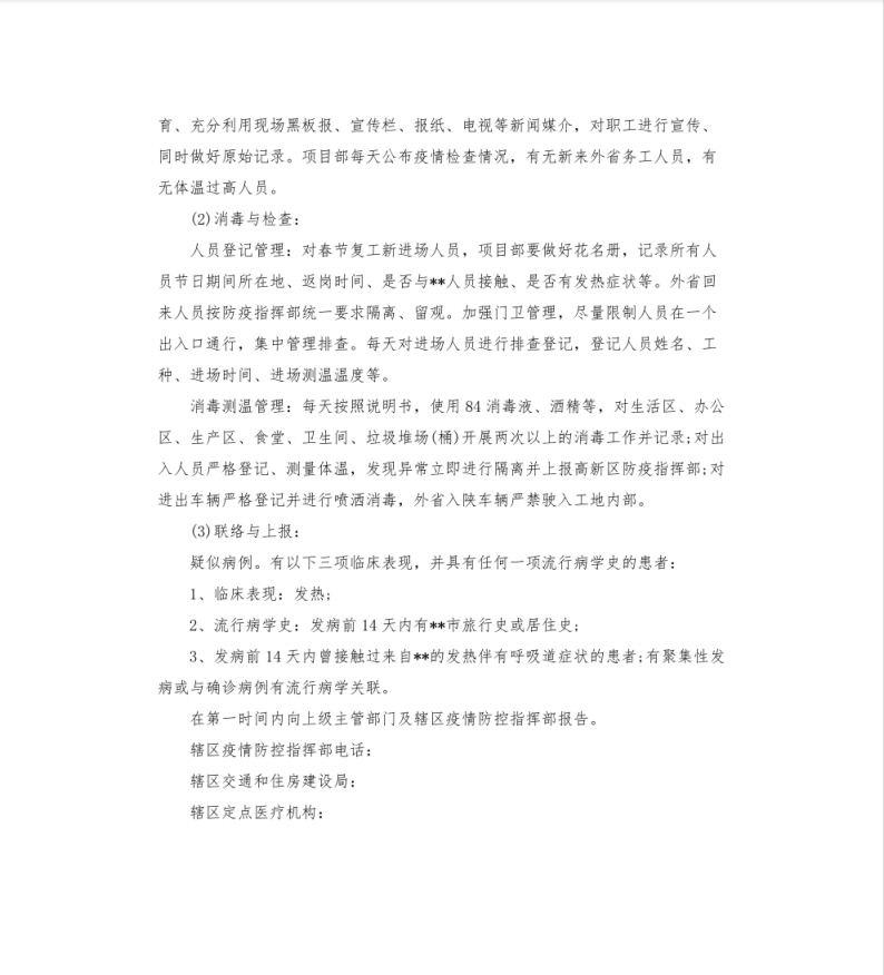 ÿÈÕ½øÐÐÊ©¹¤ÈËÔ±ÉíÌ岡¿öÅŲ飬һµ©·¢ÏÖ·¢ÈȵÈÒÉËÆÖ¢×´µÄÈËÔ±£¬Á¢¼´ËÍÍùÒ½ÔºÕïÖΣ¬¼°Ê±¶ÔÔ±¹¤ËùÔÚÇÞÊÒËùÓÃÎïÆ·½øÐг¹µ×Ïû¶¾£¬·¢ÏÖÒßÇéÁ¢¼´Ïò¸ßÐÂÇøÒßÇé·À¿ØÖ¸»Ó²¿±¨¸æ¡£