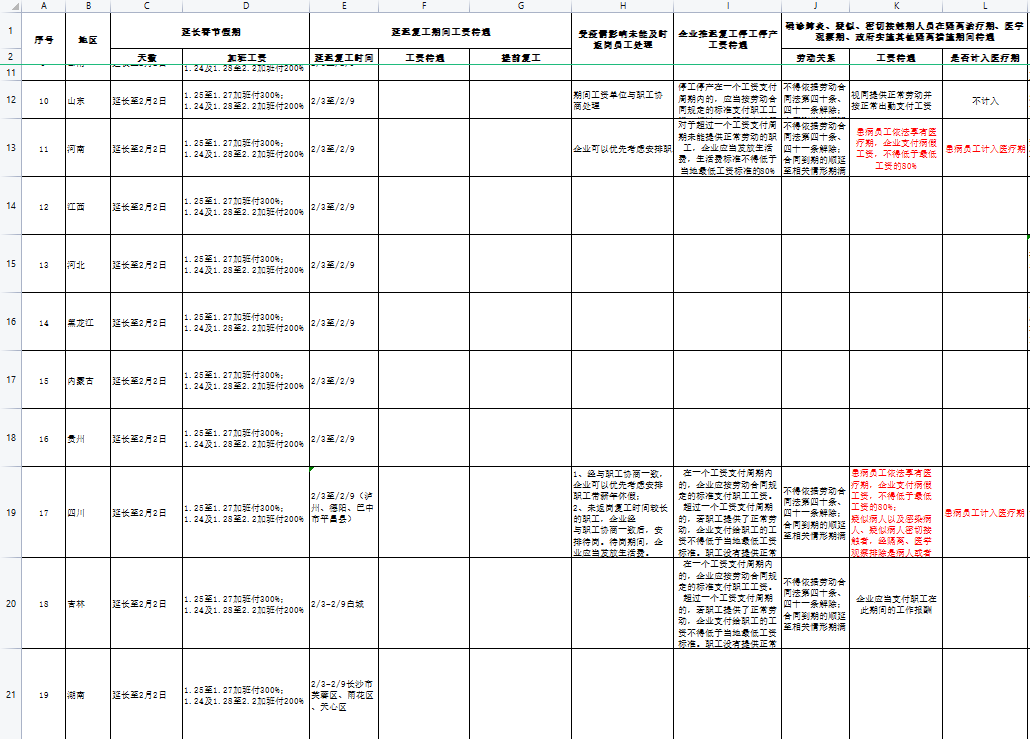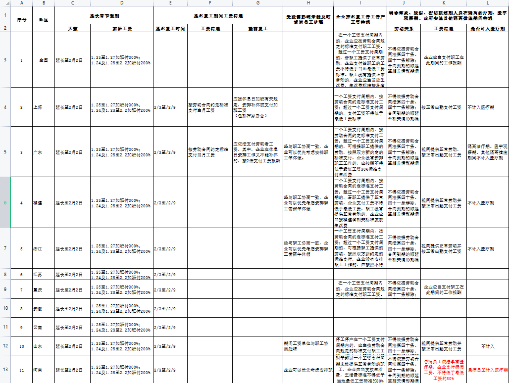 • 新冠肺炎期间各地相关劳动关系政策汇总