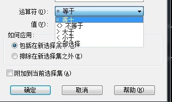 6.选择运算符,有等于、不等于、大于、小于、全选五种。