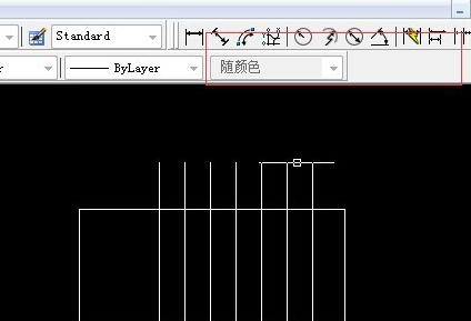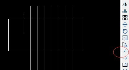 3.那么现在要把上下超出矩形的线段剪去,那么先要选择修剪命令。点击与要修剪的线段相交的线段。这里矩形下边线与所有的竖线相交,所以选择下边线,回车。
