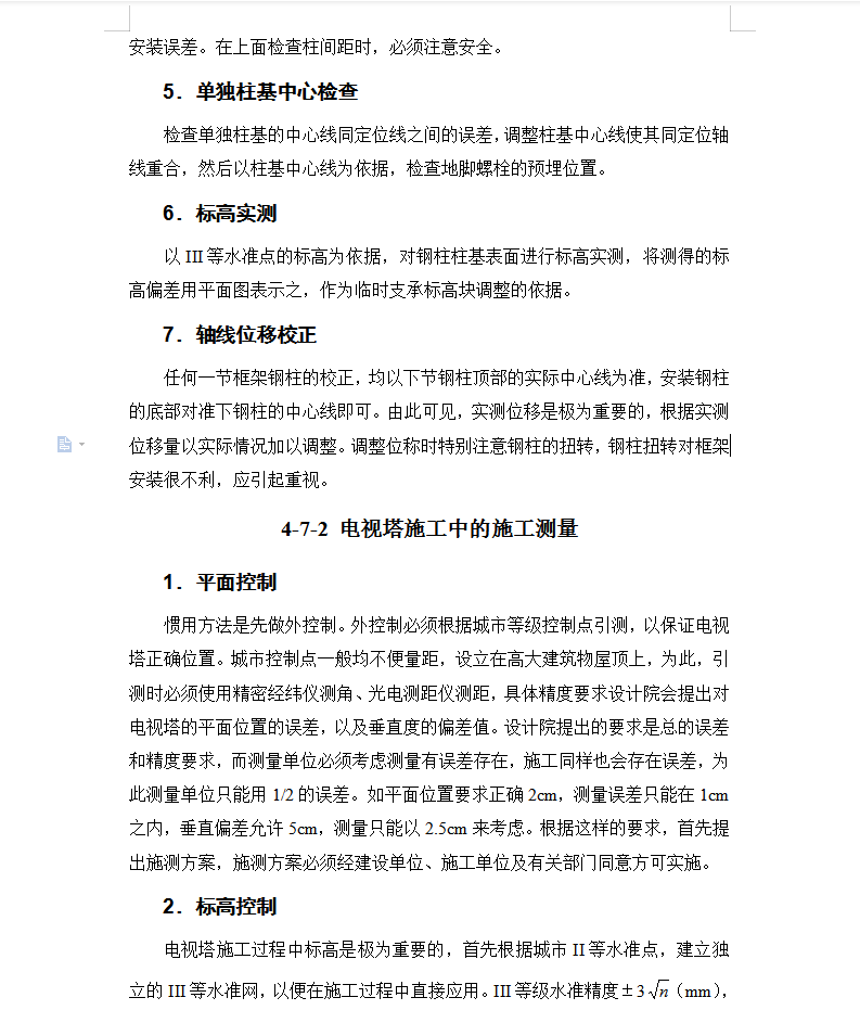 ½¨Á¢Ê©¹¤¿ØÖÆÍø¶Ô¸ß²ã¸Ö½á¹¹Ê©¹¤ÊǼ«ÎªÖØÒªµÄ¡£¿ØÖÆÍøÀëÊ©¹¤ÏÖ³¡²»ÄÜÌ«½ü£¬Ó¦¿¼Âǵ½¸ÖÖùµÄ¶¨Î»¡¢¼ì²é¡¢Ð£Õý¡£¸ß²ã¸Ö½á¹¹¹¤³Ì±ê¸ß¼«ÎªÖØÒª£¬¸ù¾Ý³ÇÊÐIIµÈË®×¼µã½¨Á¢¶ÀÁ¢µÄÒÔIIIµÈÒªÇóµÄË®×¼Íø£¬ÒÔ±ãÔÚÊ©¹¤¹ý³ÌÖÐÖ±½ÓÓ¦Óã¬ÔÚÖ§³Ð±ê¸ß¿éÒý²âʱ±ØÐë¶ÔË®×¼µã½øÐмì²é£¬IIIµÈË®×¼¾«¶ÈÒªÇóÒÔ¡À£¨mm£©£¬nΪ²âÕ¾Êý¡£