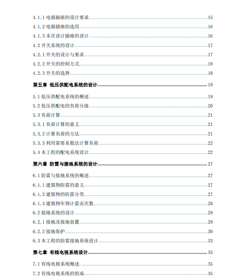 本次设计题目是xxxx 2#别墅电气设计,本工程为四层住宅,建筑面积 583.4m2, 建筑高度为 15.7m。本设计说明书主要阐述了居民住宅楼各系统电气设计的设计依据、 原则和方法及设计选择的结论。此建筑住宅生活用电为三级负荷,按三类防雷建筑物设计。