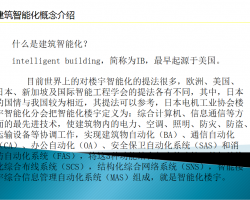 楼宇自控系统:该系统是智能弱电系统的核心,监控照明控制系统、给排水控制系统、暖通空调系统、变配电控制系统,采取三级控制方式。