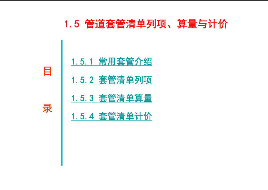 ¹ÜµÀÌ×¹ÜÇåµ¥ÁÐÏî¡¢ ËãÁ¿Óë¼Æ¼ÛµÄÖ÷ÒªÄÚÈÝÊÇ£º³£ÓÃÌ׹ܽéÉÜ¡¢Ì×¹ÜÇåµ¥ÁÐÏî¡¢Ì×¹ÜÇåµ¥ËãÁ¿¡¢Ì×¹ÜÇåµ¥¼Æ¼Û¡£