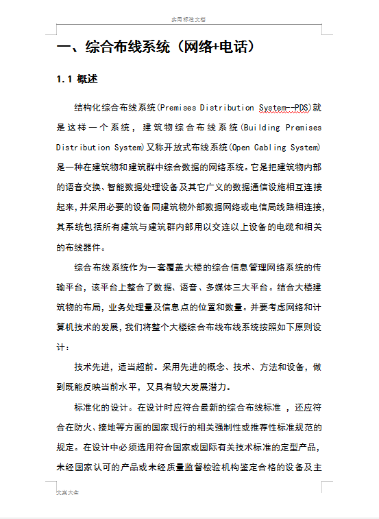 结构化综合布线系统就是这样一个系统,建筑物综合布线系统又称开放式布线系统(Open Cabling System)是一种在建筑物和建筑群中综合数据的网络系统。它是把建筑物内部的语音交换、智能数据处理设备及其它广义的数据通信设施相互连接起来,并采用必要的设备同建筑物外部数据网络或电信局线路相连接,其系统包括所有建筑与建筑群内部用以交连以上设备的电缆和相关的布线器件。
