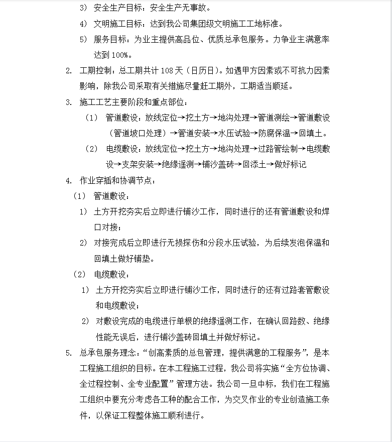 5)服务目标:为业主提供高品位、优质总承包服务。力争业主满意率达到100%。