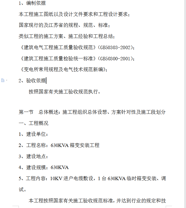 工程内容:10KV进户电缆敷设,1台630KVA临时箱变安装、调试。