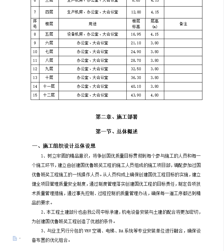 工程内容:水、电、暖通设备安装工程,质量要求 符合国家质量验收规范,质量目标:争创国优