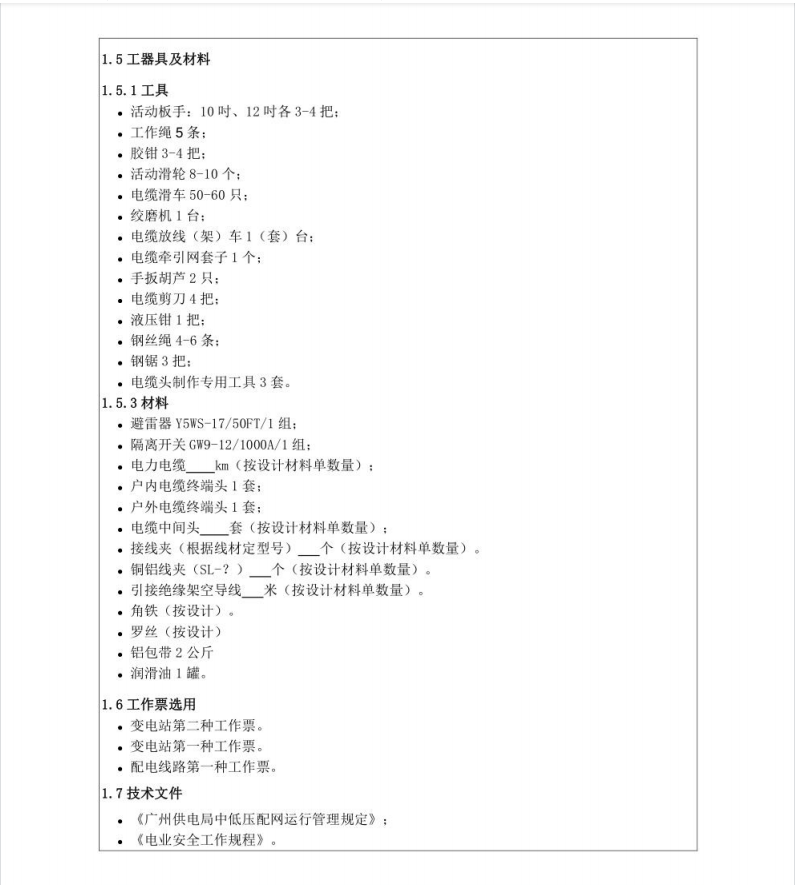 工作人员对电缆敷设路径沿途的井沟管路进行全面检查,确保电缆數设通道畅通无阻碍,井沟无积水;在施工地段装设警示围拦和警示标志;在电缆通过的各个受力点及转角位装设电缆滑车,并设人监护防止电缆损伤:检查电缆车、牵引绞磨设备、牵引钢丝绳及连接部件正常,各点人员设置合适;在电缆牵引头端做好防水渗入措施;设置专人指挥牵引操作。