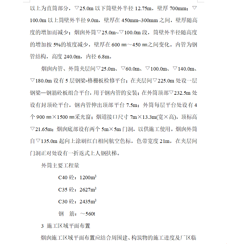ÑÌ´ÑÄڹܡ¢ÍâͲ¼Ð²ã¼ä?25.0m¡¢?60.0m¡¢?100.0m¡¢?140.0m¡¢?180.0mÉèÓÐ5²ã¸ÖÁº-¸ñÕ¤°å¼ìÐÞÆ½Ì¨£»Ôڼвã¼ä?225.0m´¦ÉèÒ»²ã¸ÖÁº¡ª¸Ö½îíŰå×éºÏƽ̨£¬ÓÃÓÚ¸ÖÄڹܵݲװ£»ÔÚÍâͲ¶¥²¿?232.5m´¦ÉèÓзⶥíÅÆ½Ì¨£¬¸ÖÄÚ¹ÜÉì³ö¶¥²¿Æ½Ì¨7.5m£»ÍâͲÿ²ãƽ̨´¦ÉèÓÐ4¸ö900?¡Á1500?²É¹â´°£»Ñ̵À½Ó¿Ú³ß´ç7m¡Á13.3m(¿í¡Á¸ß)£¬¶¥±ê¸ß?21.65m£»Ñ̴ѵײ¿ÉèÓÐÁ½¸ö5m¡Á5mÃŶ´£¬ÒÔ¹©Ê©¹¤Ê¹Óá£