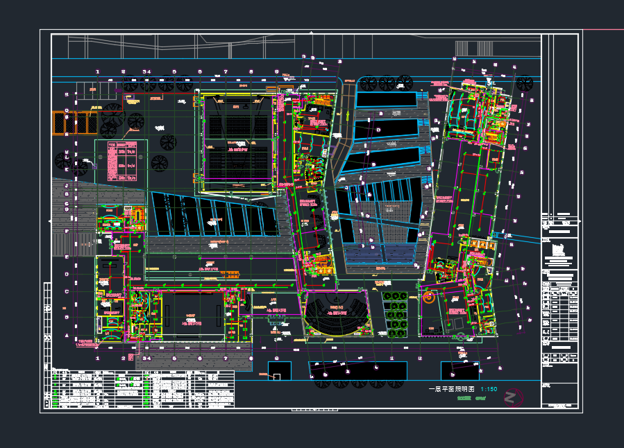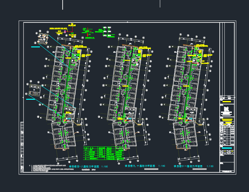 十一层机关教学楼及综合楼电气施工图纸,包括:照明系统图、照明平面图、插座平面图、动力平面图、变电所设备布置平面图、接地平面图、剖面图、BDS1,BDS2系统图、低压配电干线图、冷冻机房配电系统图、变电所低压配电系统图、屋面防雷平面图等