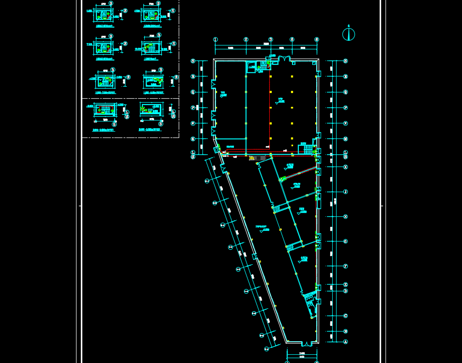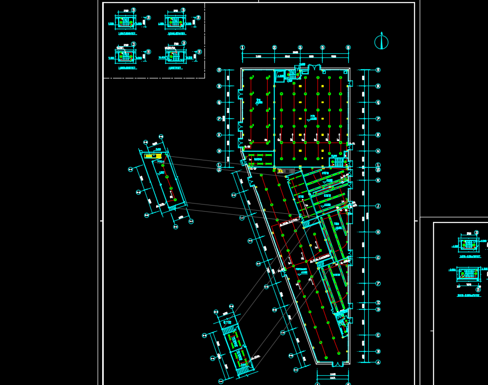 单层钢筋混凝土结构厂房动力站电气施工图纸,包括:配电箱系统图、配电平面图、普通照明平面图、应急照明平面图、消防系统图、消防平面图、屋面防雷平面图、基础接地平面图