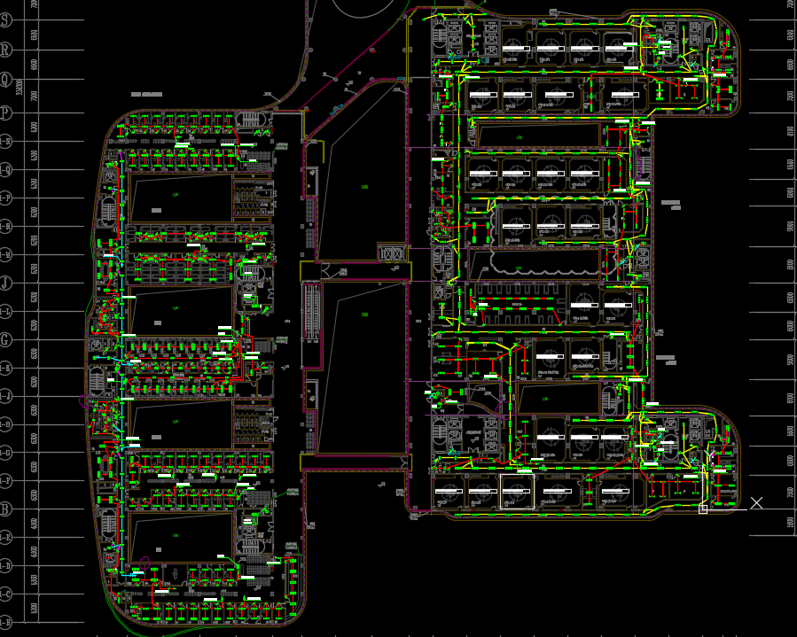 大型医院全专业施工图纸 第三部分(强弱电)包括供配电系统主接线示意图、总配变电所10KV系统图、分配变电所10KV系统图、配变电所计算机监控及电能管理系统网络拓扑图、总配变电所T1变压器低压系统图、分配变电所T8变压器低压系统图、总配变电所平面布置图、总配变电所接地平面图、总配变电所构件预埋平面图、分配变电所平面布置图、分配变电所接地平面图、分配变电所构件预埋平面图、柴油发电机房平面布置图、接地平面图、人防电站低压系统图