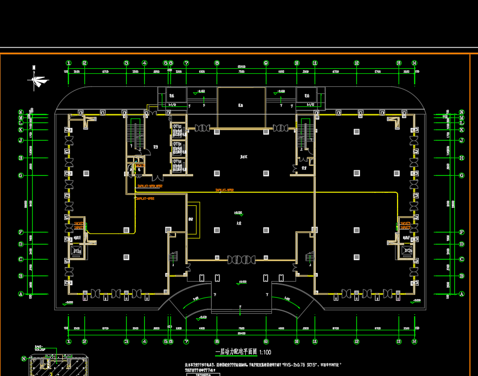 十九层办公楼电气专业施工图纸,包括:火灾自动报警系统图、火灾自动报警平面图、动力配电系统图、动力配电平面图、照明平面图、竖向配电干线系统图、配电干线平面图