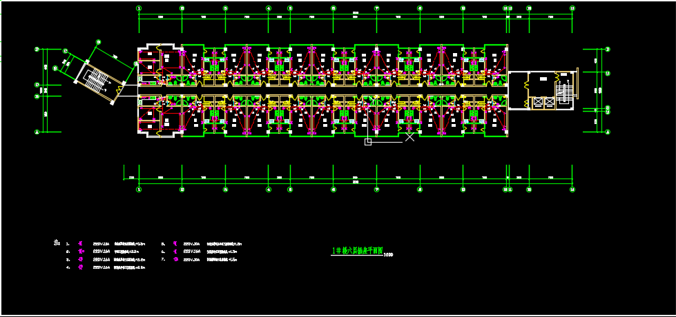 多层公寓强电全套图纸包括:1#楼二层插座平面图、1#楼三~五层插座平面图、1#楼六层插座平面图、1#楼七层插座平面图、1#楼屋顶防雷平面图、1#楼接地平面图、1#楼竖向配电系统图、1#楼一层照明平面图、1#楼二层照明平面图、1#楼三~五层照明平面图、1#楼六层照明平面图