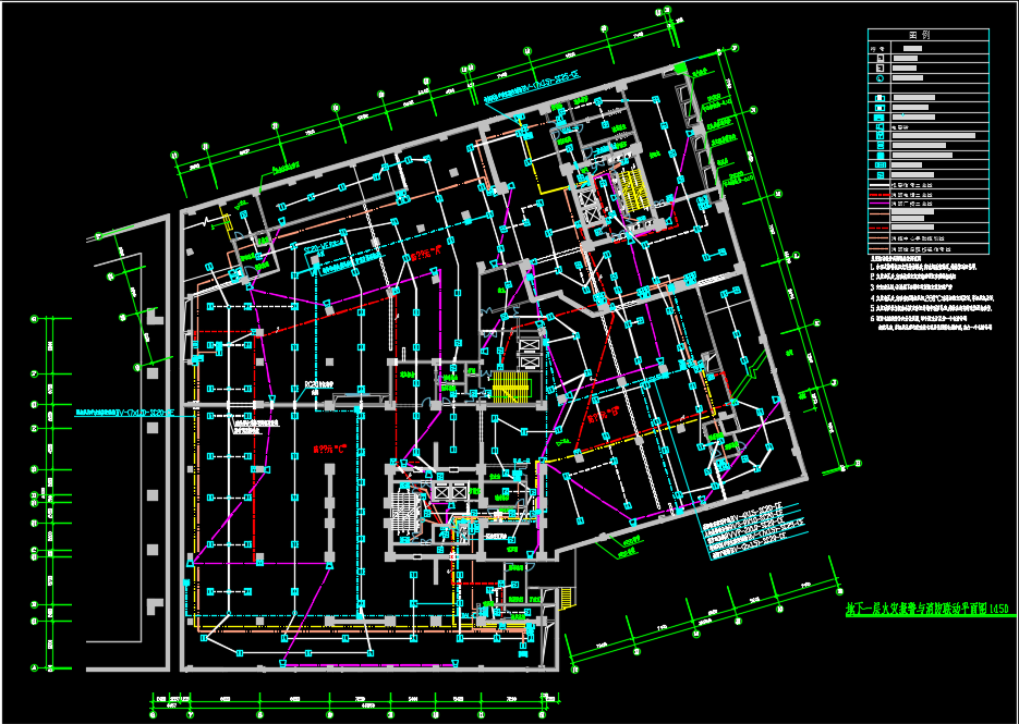大厦三层地下室电气图纸包括:地下一层火灾报警与消防联动平面图、地下一层照明(平时与战时)平面图、地下一层动力平面图、地下一层人防电气平面图、地下二层火灾报警与消防联动平面图、地下二层照明平面图、地下二层动力平面图、地下三层火灾报警与消防联动平面、地下三层照明平面、地下三层动力平面。