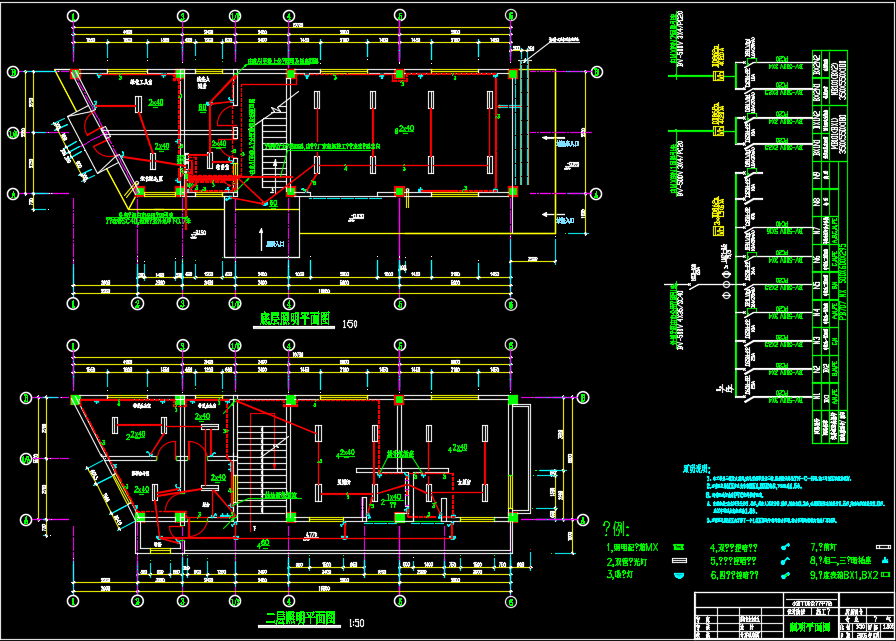 公共建筑照明平面图包括:底层照明平面图、二层照明平面图。