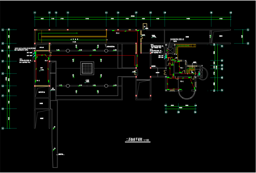 纪念馆二期强电施工图包括:底层照明平面图、底层应急(事故)照明平面图、底层插座平面图、底层等电位(接地)平面图、屋面避雷平面图、强电系统图。