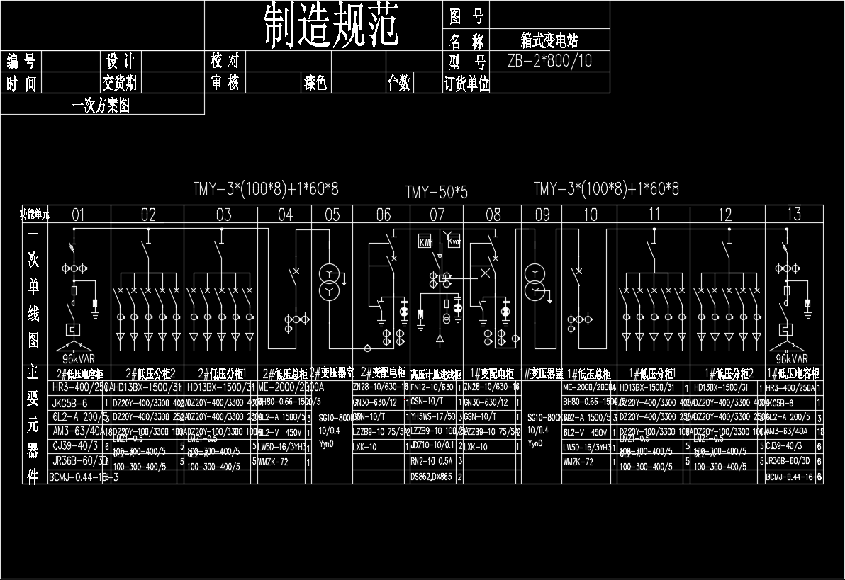 双800KVA欧式箱式变电站一次系统图纸