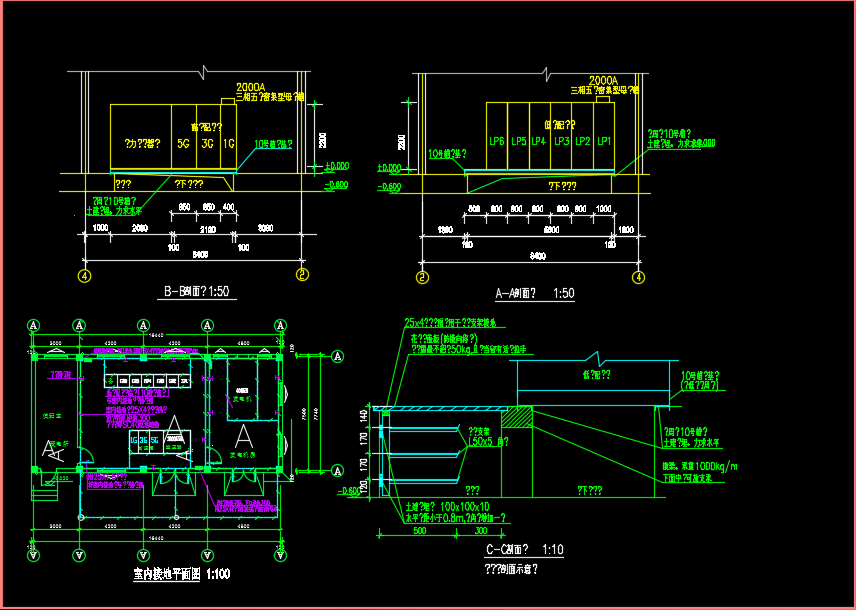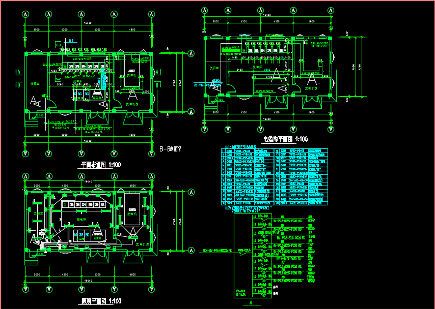 变电站变配电、照明、防雷接地系统图包括:平面布置图、电缆沟平面图、照明平面图、基础接地平面图、屋面防雷平面图 、室内接地平面图、剖面图。