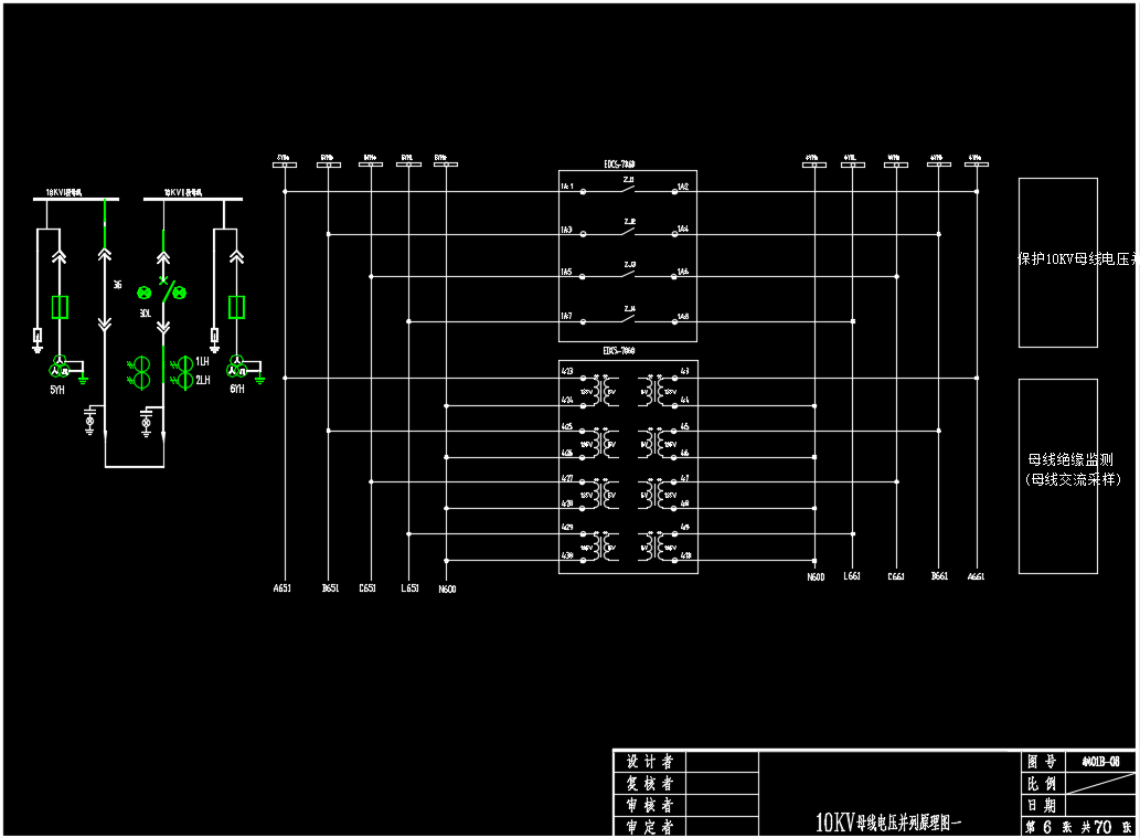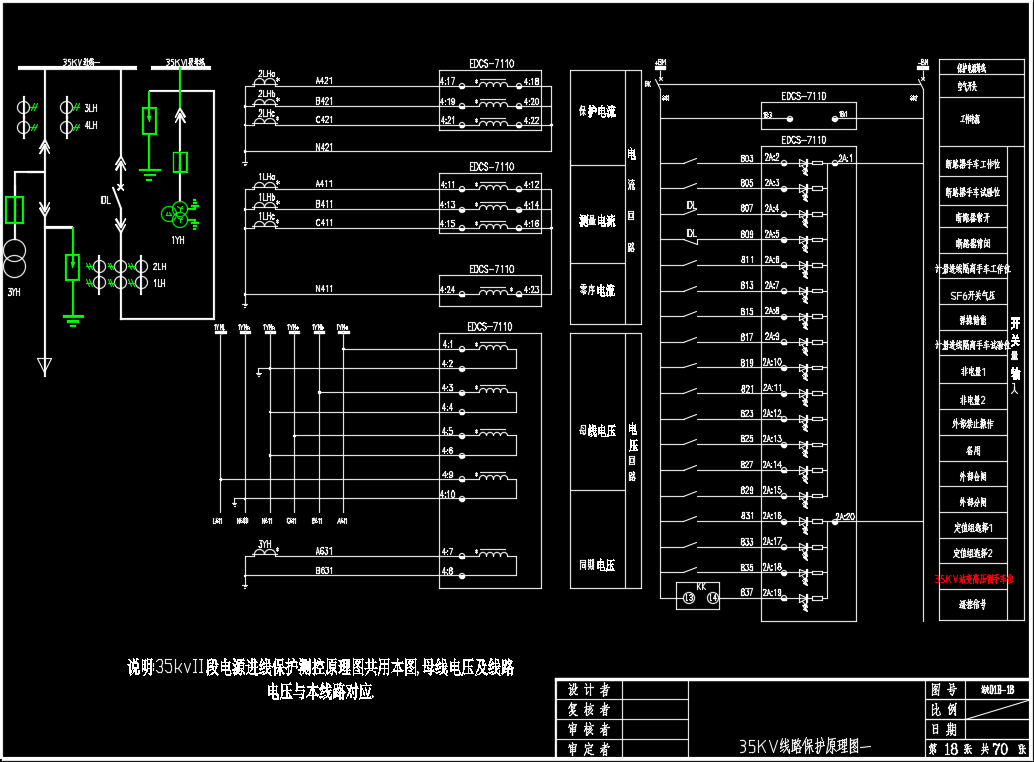 某35KV变配电所电气设计图纸包括:主接线图、10KV母线电压并列原理图、10KV母线电压并列装置端子图、10KVII段馈线线路保护原理图、35KV线路保护原理图、35KV电源进线一线路保护端子图、变压器高后备保护原理图、10KV母线分段保护原理图、主变主保护端子图、10KVI段电容馈出I保护原理图等。
