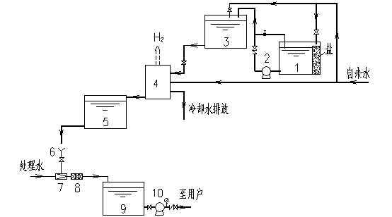 1____溶盐池 2____塑料泵 3____盐水槽 4____次氯酸钠发生器