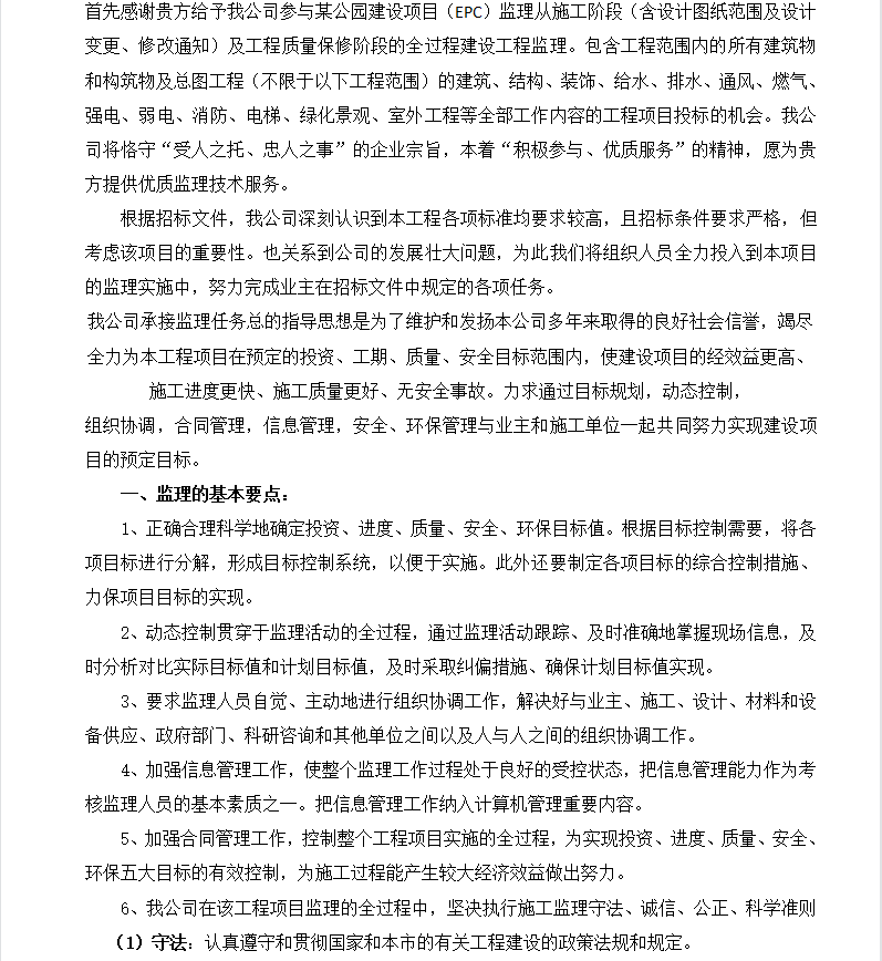 为确保本项目监理工作的质量,公司将配置全站仪、水准仪、经纬仪、回弹仪、测厚仪等进测量、检测设备对施工单位的测量数据和检测结果进行复核和检验,不借用施工单位的测量仪器及检测工具以保证数据的正确性。而且考虑到本项目地处市区,公司将安排现场监理人员就近住宿,并且配置现场交通工具以满足现场监理工作的需要。