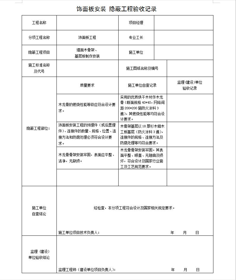• 工作室装饰装修隐蔽工程验收记录 14P