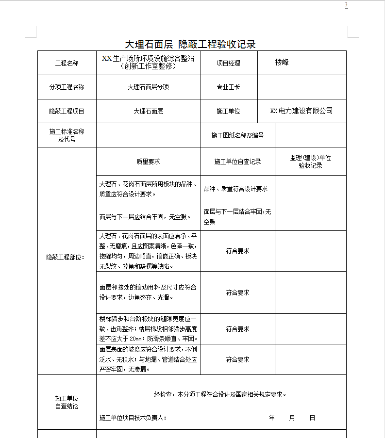 本文为工作室装饰装修隐蔽工程验收记录,包括:地面层隐蔽工程验收记录、饰面板安装隐蔽工程验收记录、大理石面层隐蔽工程验收记录、玻璃制品制作与安装隐蔽工程验收记录等,供大家参考。
