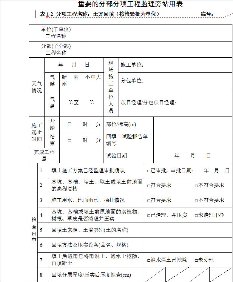 本文为重要分部分项工程监理旁站用表,供大家参考。