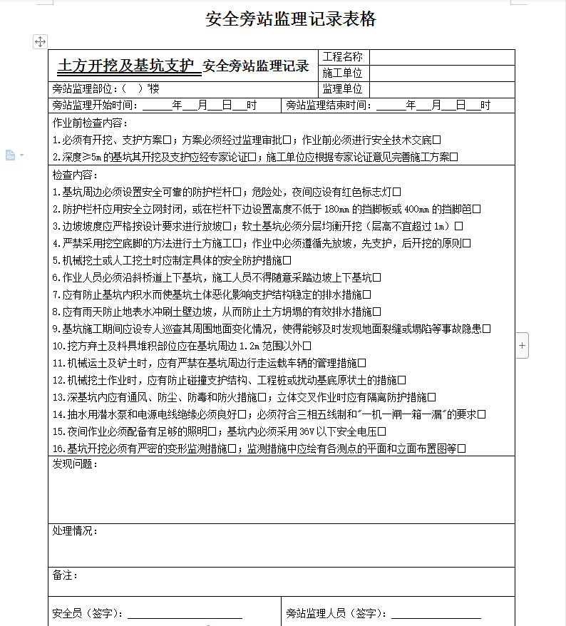 ½¨Öþ¹¤³Ì°²È«ÅÔÕ¾¼àÀí¼Ç¼±í¸ñ 7P