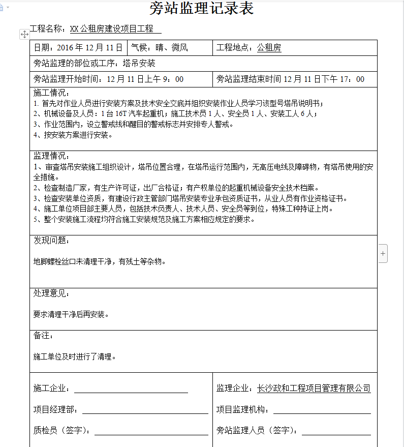 ¹«×â·¿Ëþµõ°²×°ÅÔÕ¾¼àÀí¼Ç¼±í 8P