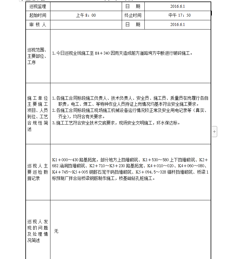 ÇÅÁº1±êÔ¤ÖÆ³§°èºÏÕ¾¸Ö½îÖÆ×÷Ê©¹¤£»ÇÅ»ù´¡×ê¿×׮ʩ¹¤£»2££´óÇÅÔ¤ÖÆ³§½¨ÉèÊ©¹¤¡£K1£«000¡«430·»ùÍØ¿í£»²¿·ÖµØ·½Éϵ²Ç½ÆöÖþ£»K1£«530¡«580ÉÏϵ²Ç½ÆöÖþ£»K2£«682º­¶´µ²Ç½ÆöÖþ£»K2£«710¡«K3£«230·»ùÍØ¿í£»K4£«010¡«020£»K4£«060¡«080ÓÒ²àϵ²Ç½·µ¹¤ÆöÖþ£»K4£«745¡«K5£«005¸Ö½îʯÁý¸ÉÂ뵲ǽÆöÖþ£»