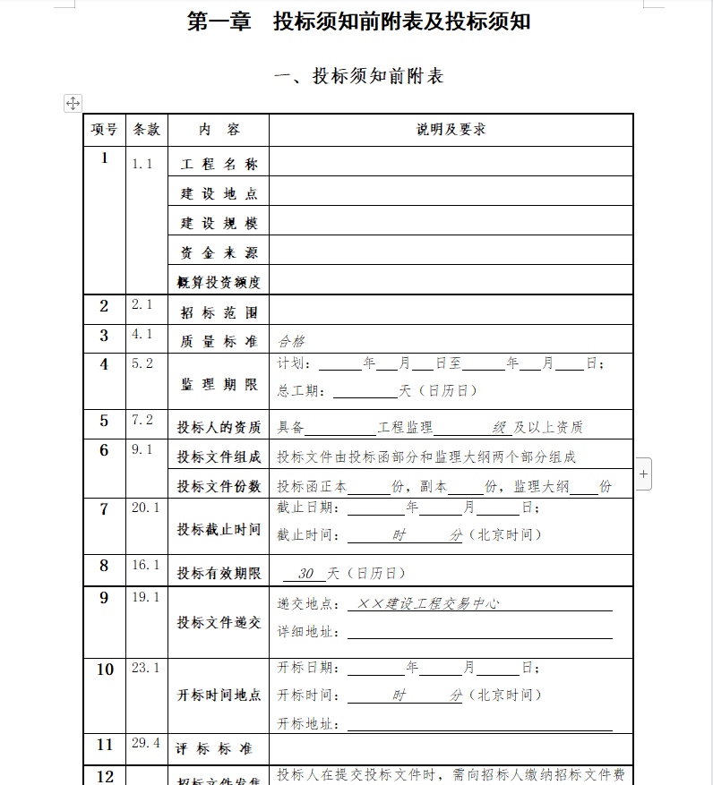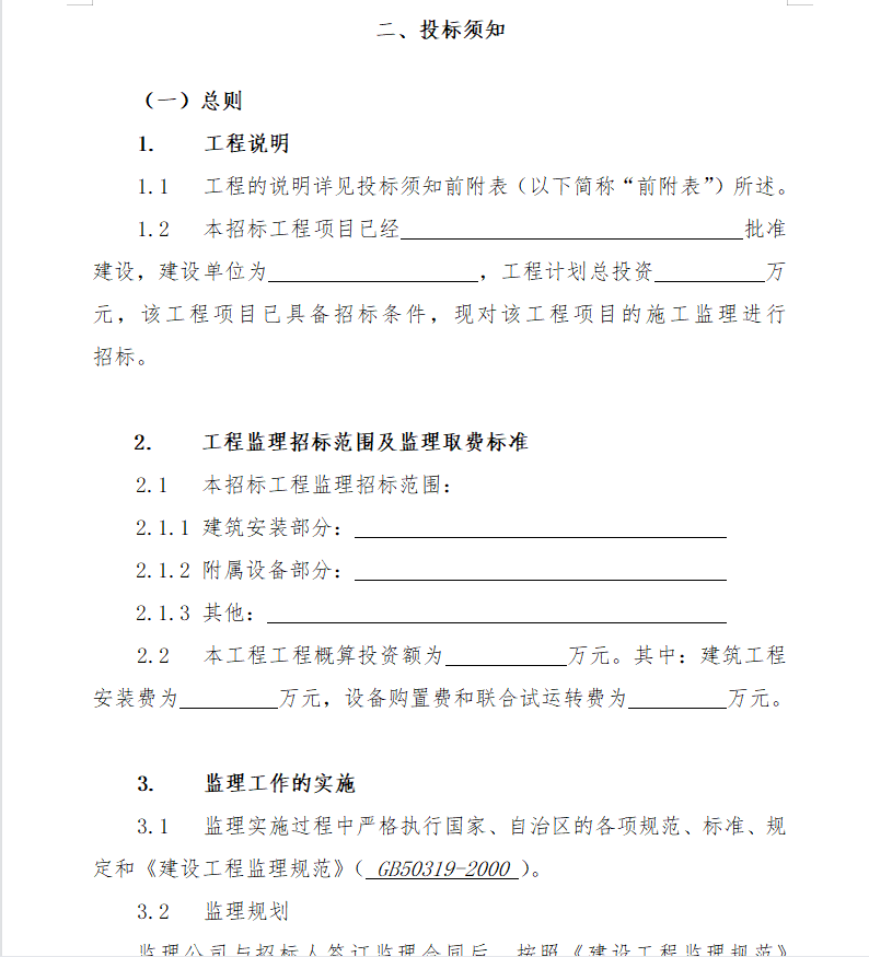 • 工程监理投标文件
